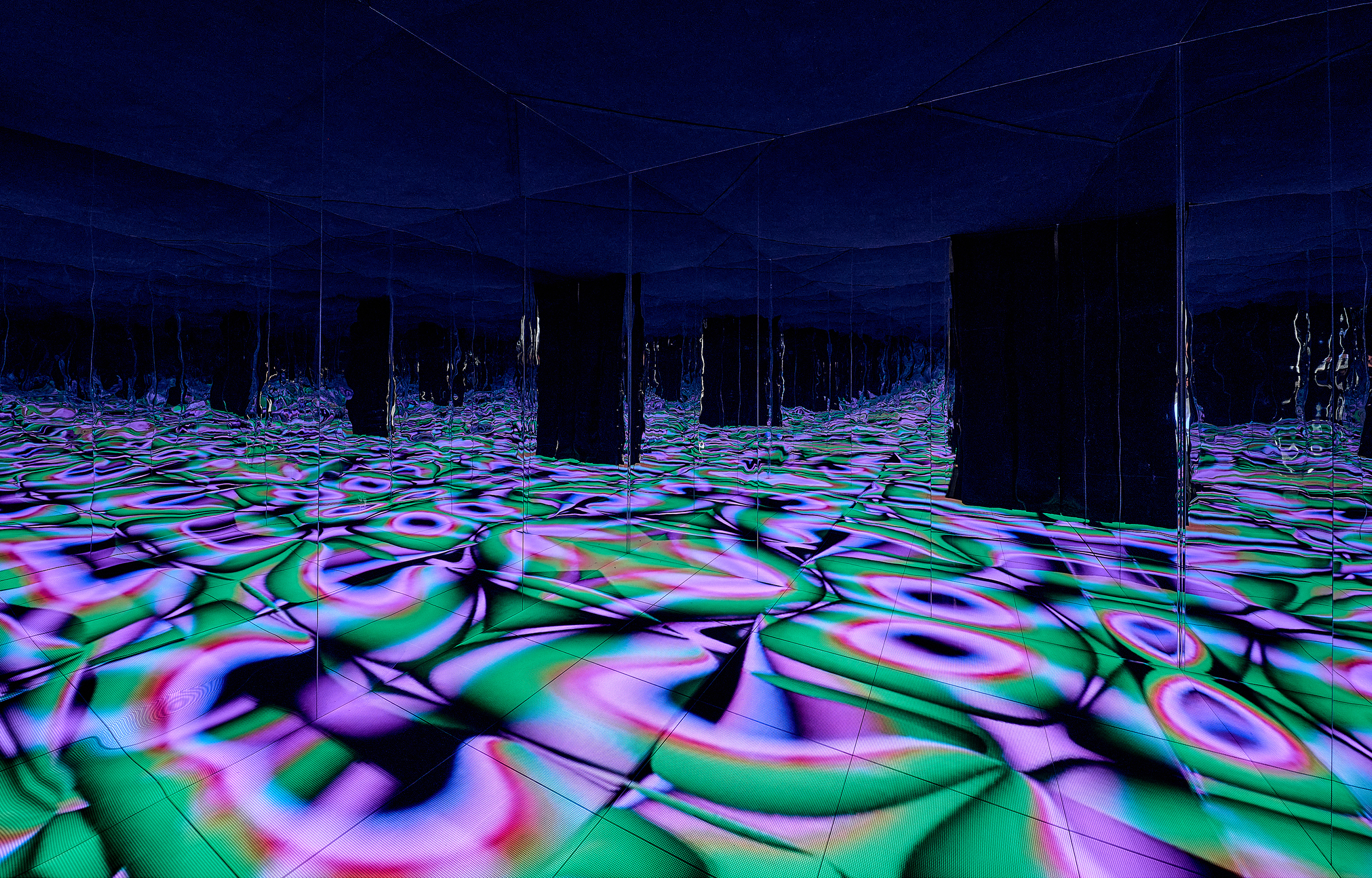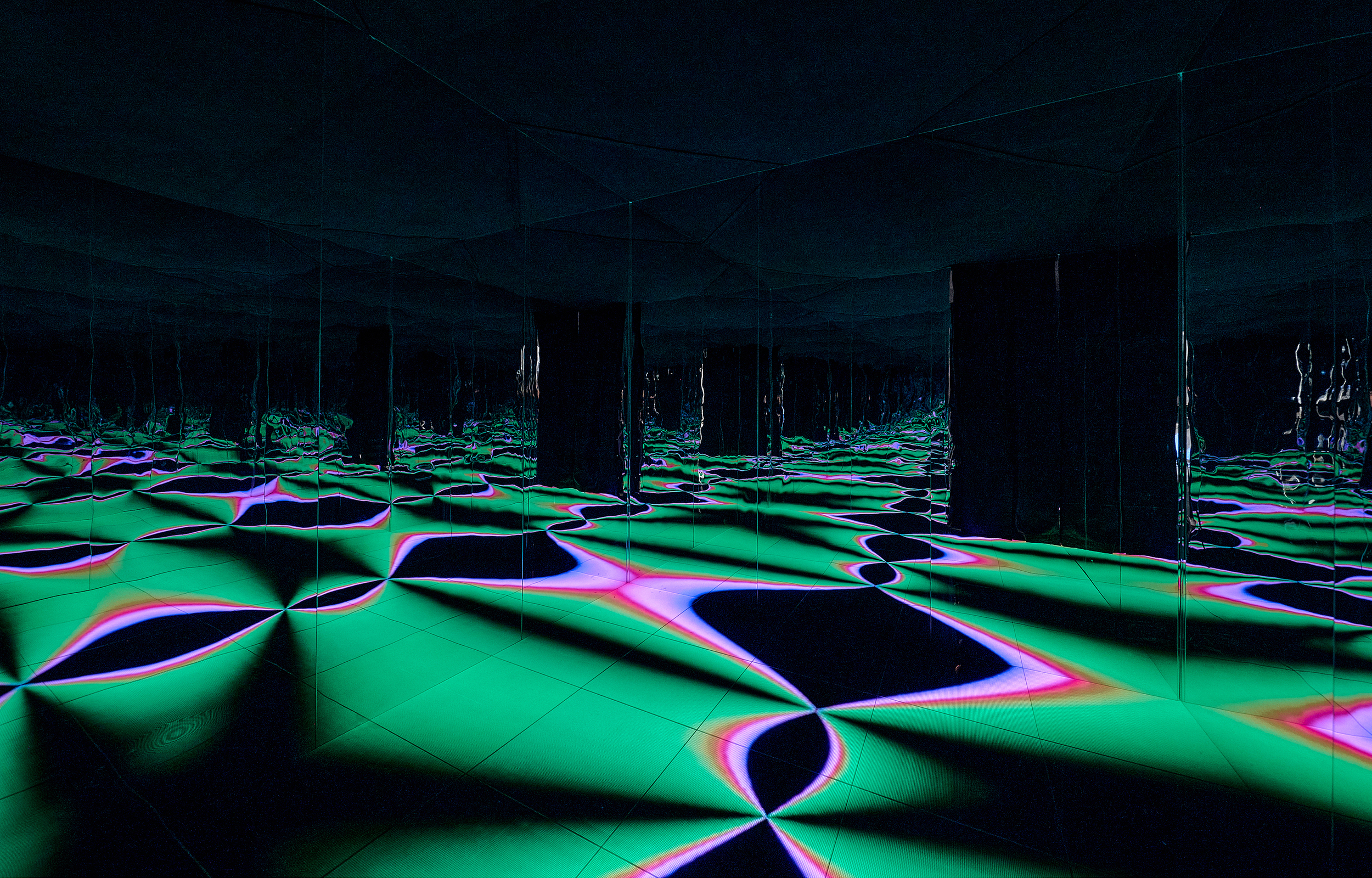 Un elemento metálico que resalta frente al entorno. Esta cápsula iluminada con materiales reflectantes potencia el impacto visual y crea un fuerte contraste realzando los accesorios expuestos.
