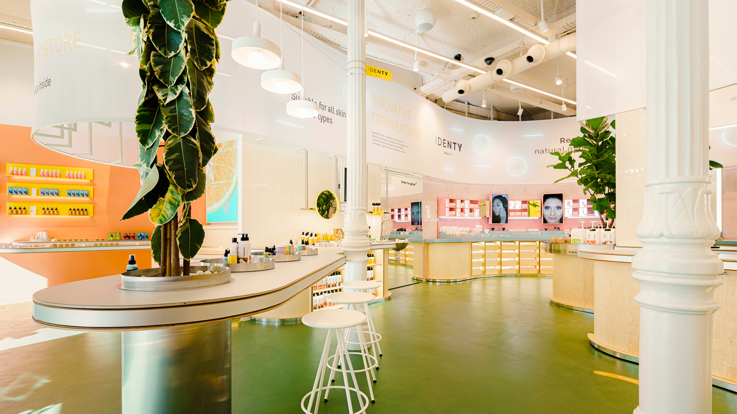 La segunda flagship de Freshly en la calle Fuencarral en Madrid es una evolución de la tienda anterior, con su icónica curva acelerando el recorrido interno y con un nuevo espacio más espontáneo y social para su línea de maquillajes Identy.